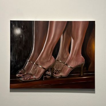 Finally, but certainly not least, Shepherd's paintings exhibit a remarkable blend of strength and delicacy, capturing light with a finesse that is both powerful and subtle. In her recent works, Shepherd employs a meticulous approach to observe, gather, and reimagine images sourced from online fetish communities. Through her artistic lens, she skillfully constructs new narratives that surpass the origins of inspiration, simultaneously generating fresh imagery that circulates across diverse digital spheres. The result is a body of work that not only showcases Shepherd's adept command of light but also reflects her ability to transcend and transform the digital landscape, creating a captivating dialogue between the virtual and the tangible.