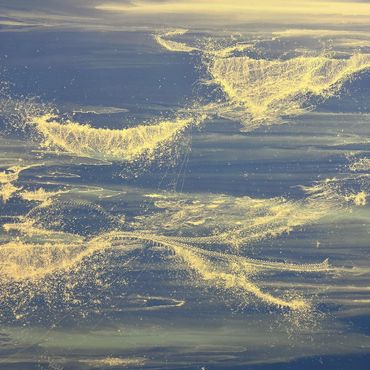 Once again, the allure of blue caught my attention, and I might need to reconsider my aversion to the color! This particular painting, featuring graphic renderings of tumultuous waves, twinkling stars, or cascading rain, evoked a sense of fairy dust. It brought to mind Tinker Bell's magical flight, leaving a trail of enchantment in her wake. Sandra Cinto, through her intricately detailed drawings, paintings, and installations, crafts mesmerizing and immersive depictions of the sea, sky, and natural elements. These visual metaphors serve as poignant reflections on the journey of life, captivating observers with their evocative beauty and symbolic resonance.