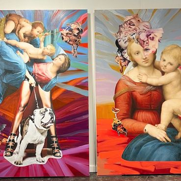Alma Gallery curated an exceptionally visually dynamic solo exhibition by Rasa Jansone, where the artist masterfully explores the intersection of collage and oil on paper as expressive mediums. Within the chaotic visual narrative, Jansone skillfully juxtaposes two powerful archetypes—the Renaissance woman and the modern woman. In this intricate interplay, a new and complex image emerges, challenging the viewer to envision today's woman without acknowledging her historical predecessor, Mary. The boundaries between the two figures blur seamlessly, making it impossible to discern which is more dominant or where one identity ends and the other begins. Jansone's exhibition invites contemplation on the enduring influence of historical narratives on contemporary perceptions, creating a compelling visual dialogue that transcends temporal boundaries.